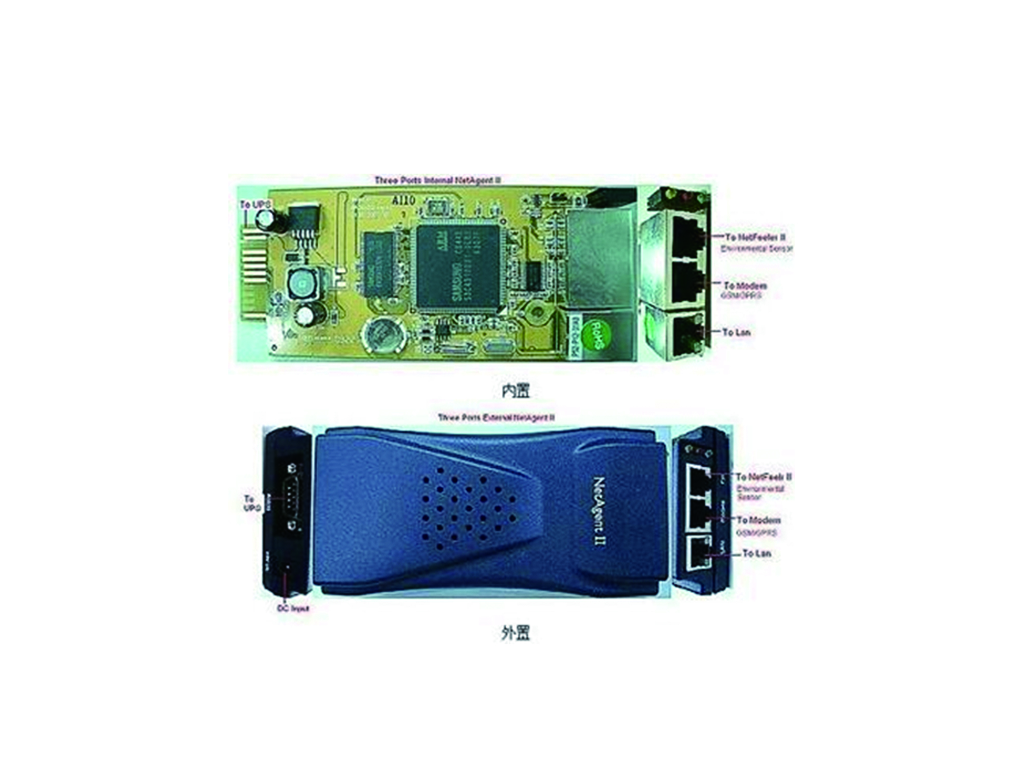 ? ? ? ?●3Port的NetAgentII產(chǎn)品除了具有SNMP卡的功能以外,還可外接環(huán)境偵測的產(chǎn)品NetFeelerLite來隨時(shí)取得此環(huán)境的溫/溫度/煙霧/火災(zāi)等訊息,并將此資訊隨時(shí)顯示在NetAgent的網(wǎng)頁上。NetAgentII也會(huì)隨時(shí)的將偵測到的環(huán)境異常狀況以電子郵件及短信發(fā)送給管理人員?!馚T705是NetAgentII系列的一個(gè)產(chǎn)品,3Port,外置,簡體中文語言。搭配環(huán)境監(jiān)控主機(jī)來監(jiān)控機(jī)房UPS與周邊溫度,濕度,水災(zāi)等等安全狀況。還可以連接GSMModem來發(fā)送短信通知。
